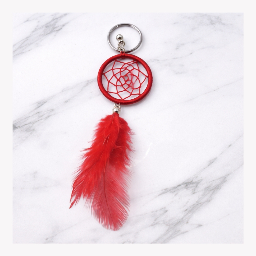 Handcrafted Dream Catcher Keychain – Red Feather Keyring