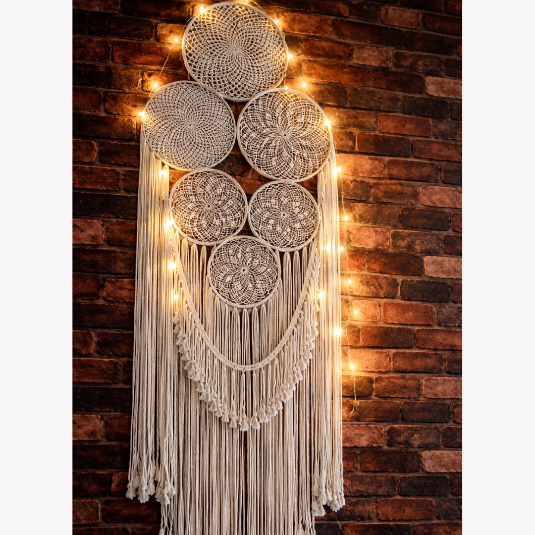 • Handcrafted macramé dream catcher wall hanging