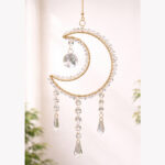 Handcrafted Crystal Moon Dreamcatcher Wall Hanging with Amethyst Stones & Glass Drops