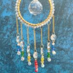 Handcrafted Crystal Suncatcher Ring Hanging with Multicolor Beads & Glass Prism Drops